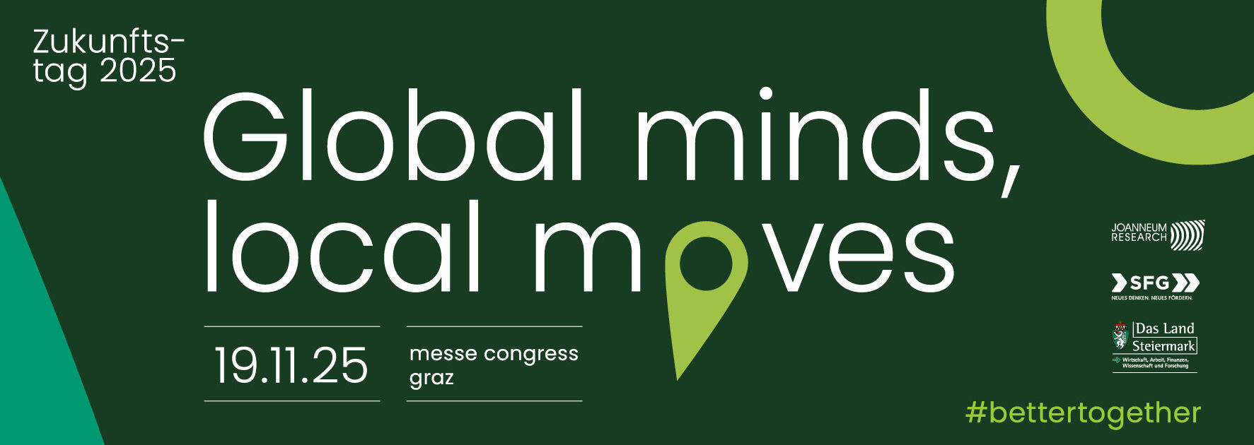 Unter dem Motto Global minds, local moves wird die Balance zwischen internationalen Perspektiven und regionalem Handeln thematisiert. In einer vernetzten Welt spielt Internationalisierung eine Schlüsselrolle für die wirtschaftliche und gesellschaftliche Entwicklung – besonders für Regionen wie die Steiermark. Global minds steht für die Offenheit und Kreativität internationaler Denkansätze, local moves für die konkreten Maßnahmen und Strategien, die auf regionaler Ebene umgesetzt werden, um einen Standort zu schaffen, der einen fruchtbaren Nährboden für die nationale und internationale Forschung bietet, heimische Unternehmen zum Bleiben und internationale Unternehmen zum Ansiedeln einlädt.