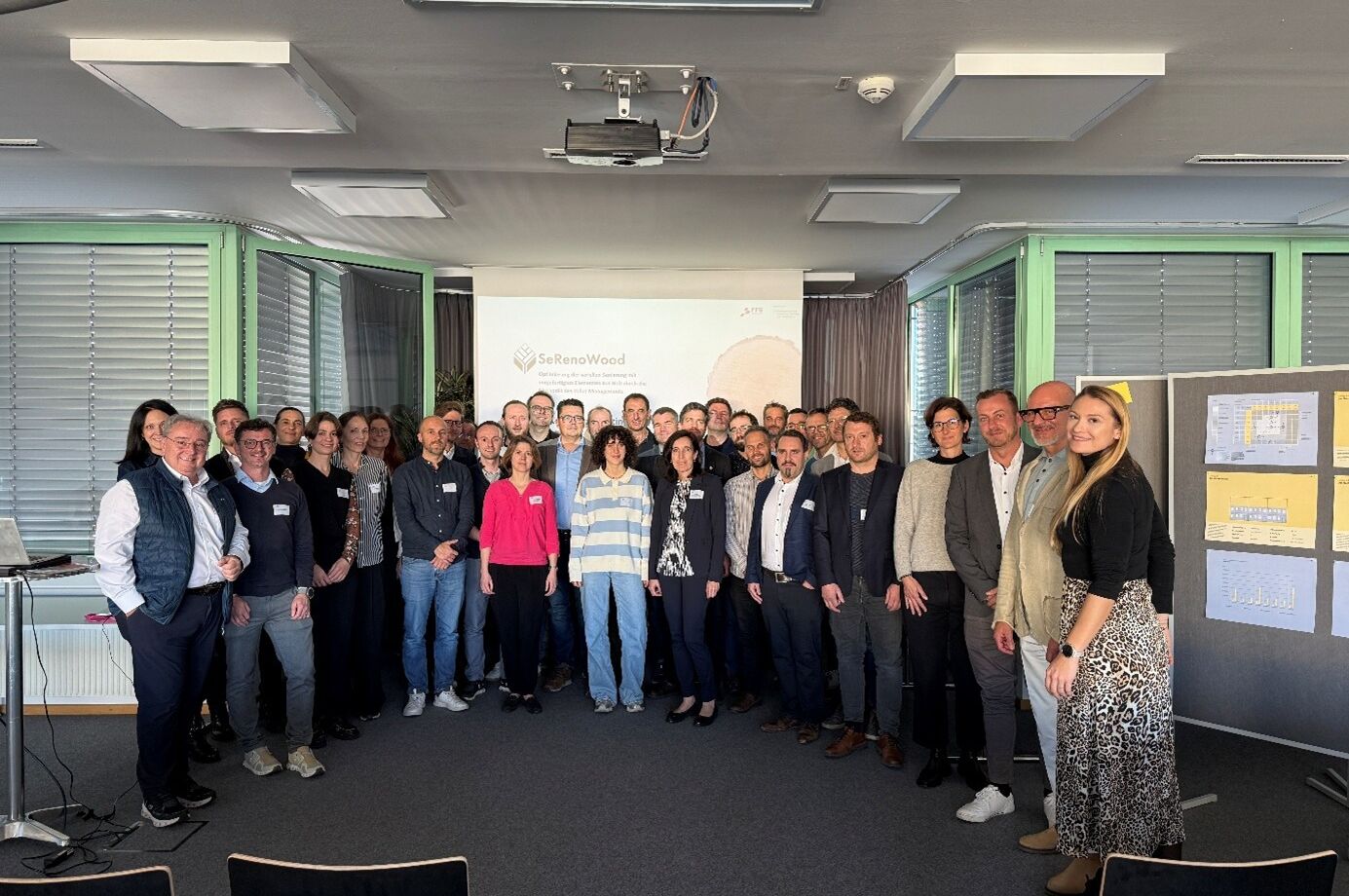 Während des Treffens stand der Austausch zwischen Forschung, Planung, Holzbauunternehmen und Portfoliohaltern im Mittelpunkt. Gemeinsam wurde daran gearbeitet, serielle Sanierungslösungen so weiterzuentwickeln, dass sie sich gut realisieren lassen und den Erwartungen der Portfoliohalter entsprechen, wobei der im Projekt verankerte Anspruch an ökologische und klimafreundliche Systeme konsequent berücksichtigt wurde.