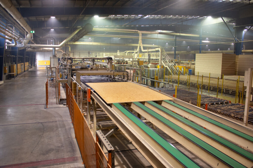 Der nächste Schritt folgte bei der HASSLACHER Holding GmbH in Stall in Kärnten. Dort wurden die Platten zu Verbundelementen weiterverarbeitet. Dieser Schritt ist besonders relevant, weil er zeigt, dass UniStrand nicht bei der Platte stehen bleibt, sondern konsequent in Richtung Bauteil und Systemlösung weitergedacht werden kann, dort, wo die Anforderungen des Hochbaus entstehen.